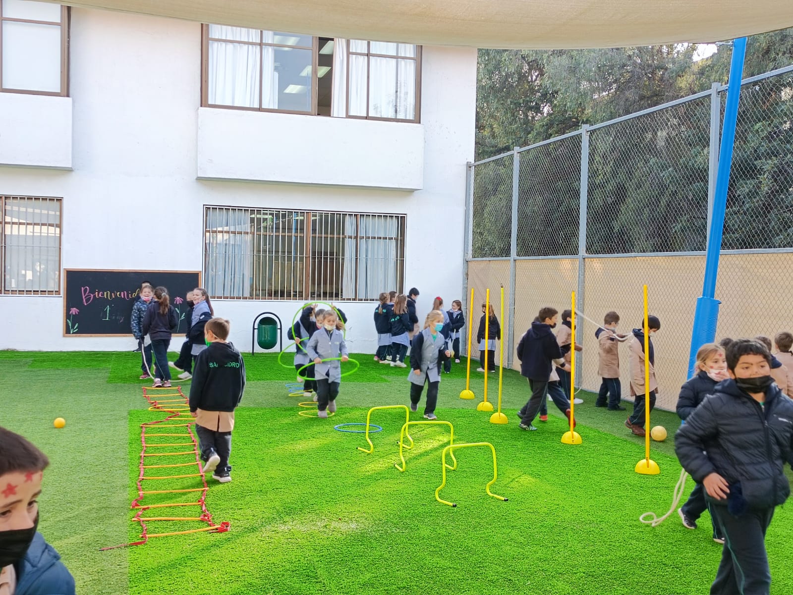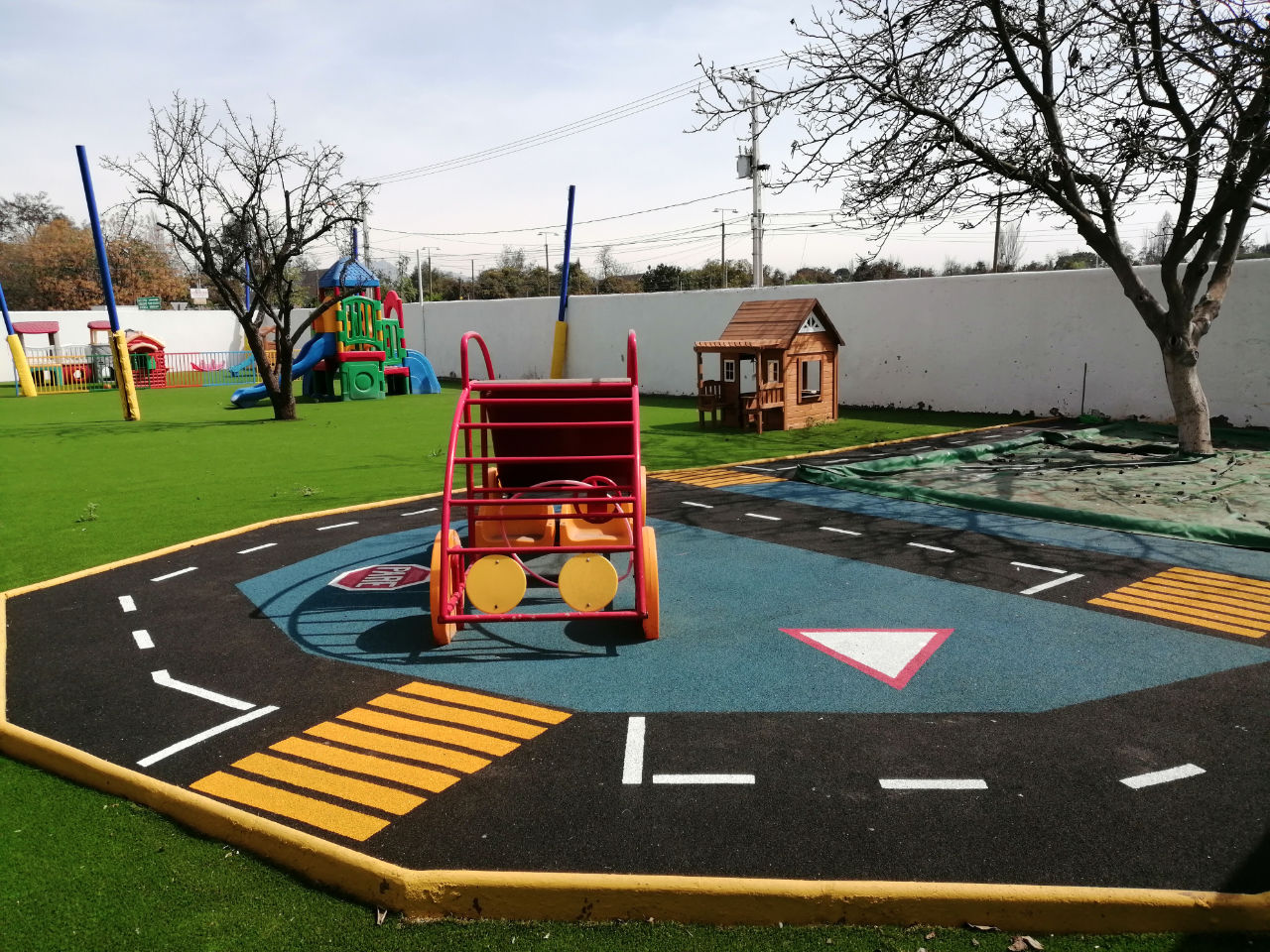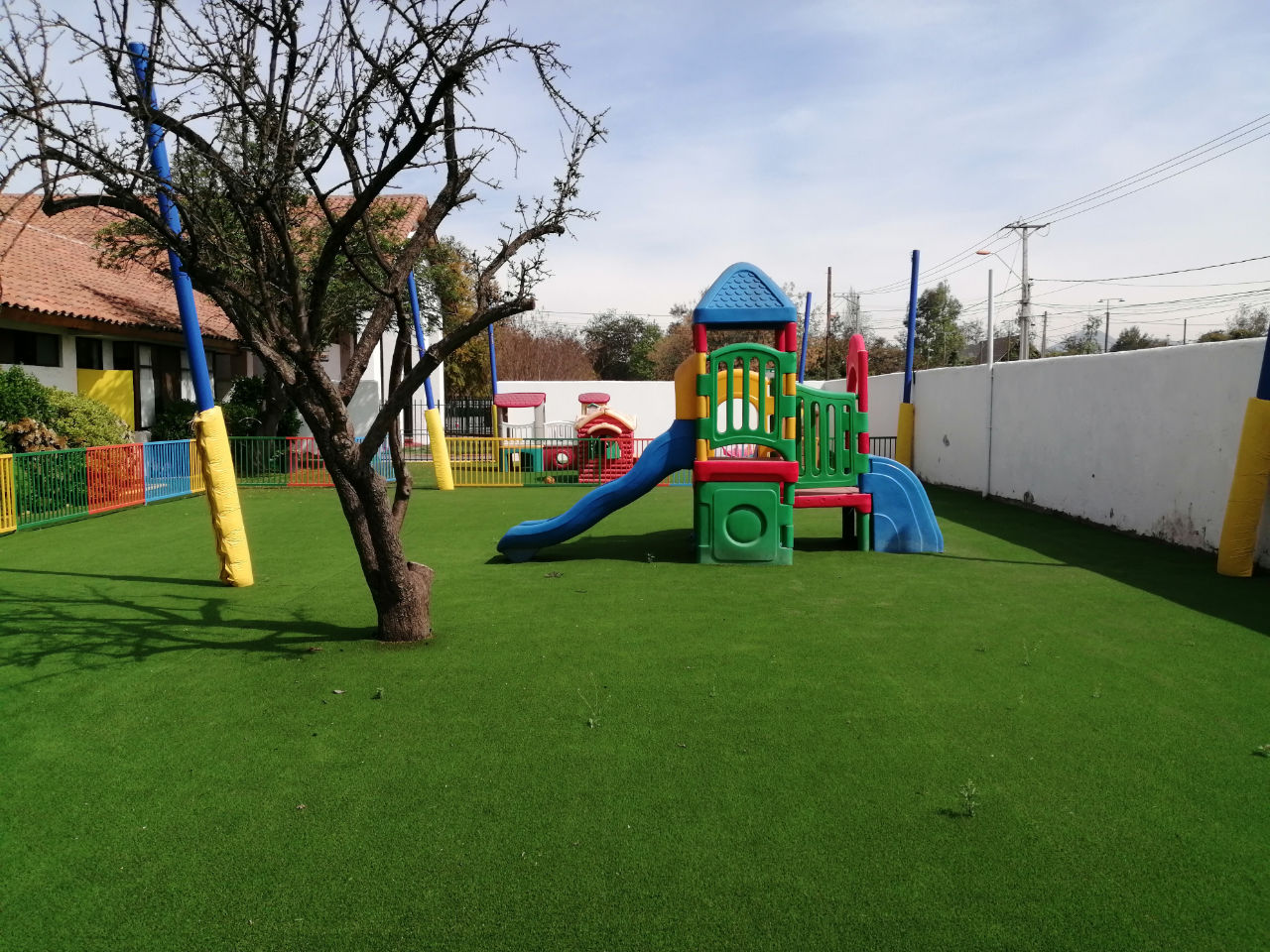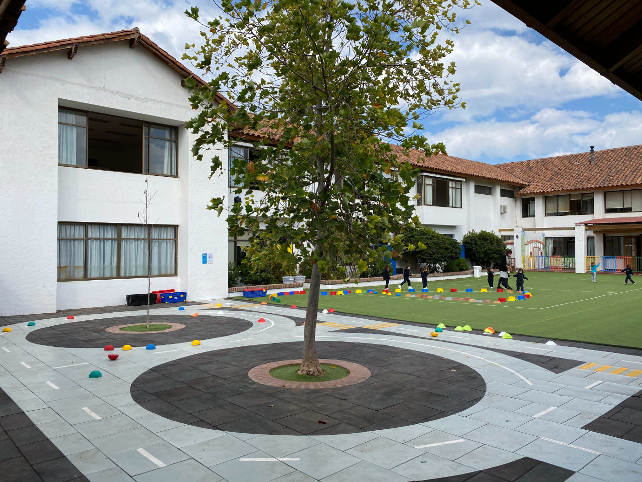 • 1 patio de pasto sintético con juegos infantiles para 1° y 2° básico