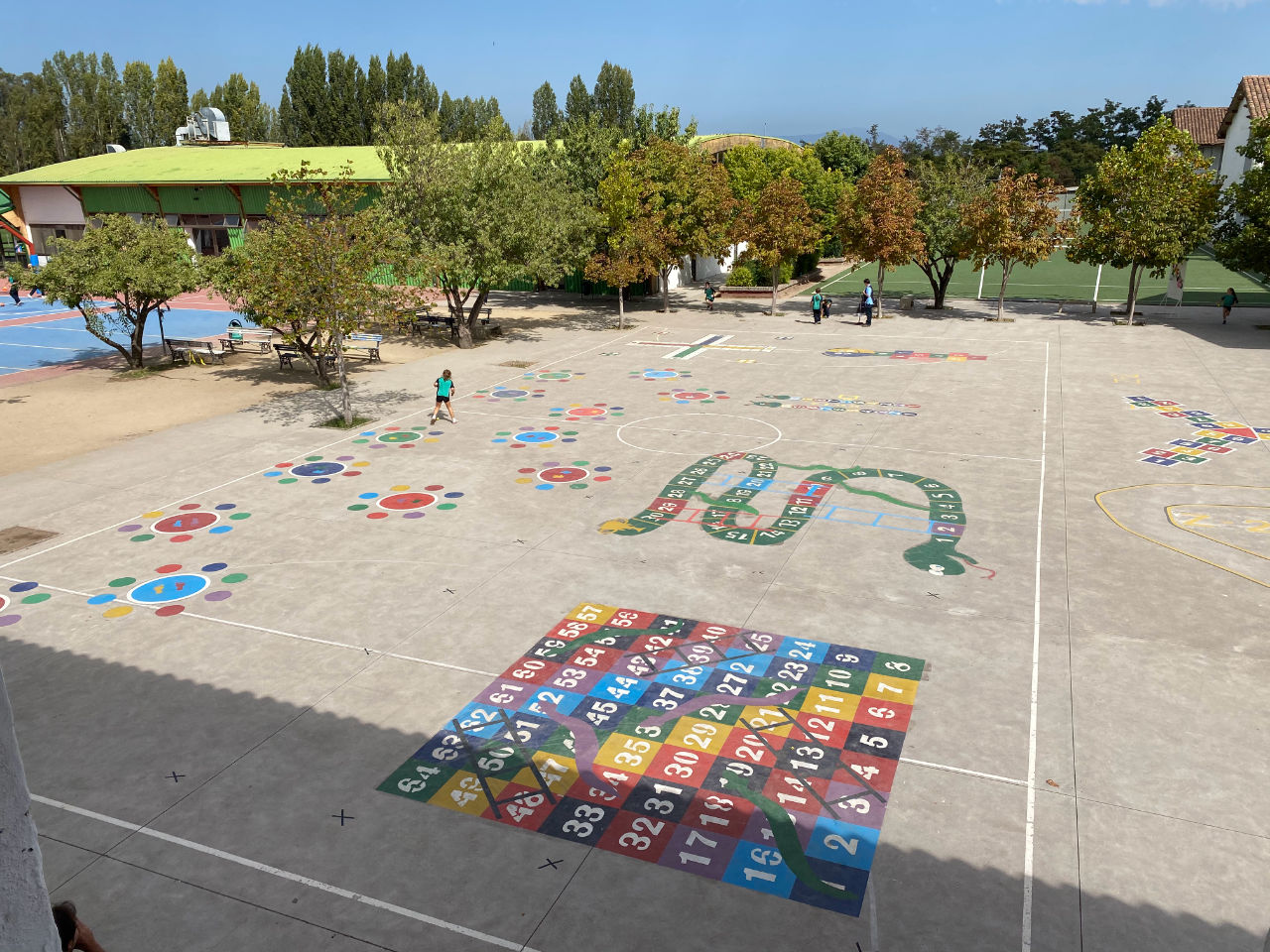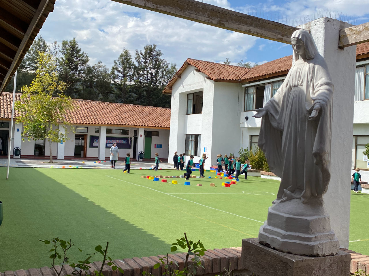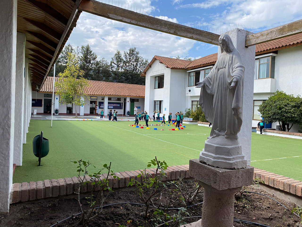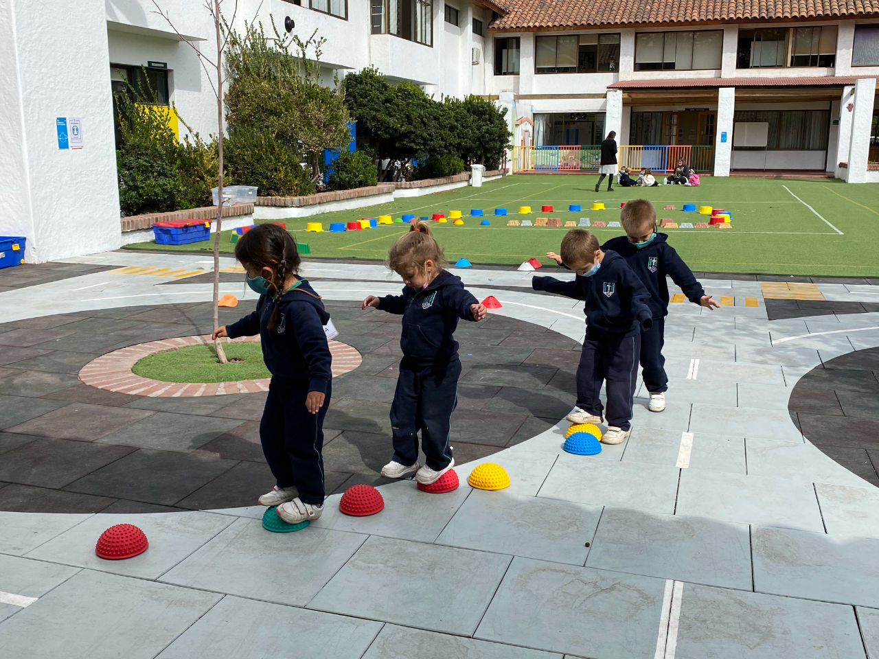 • 1 patio de pasto sintético con juegos infantiles para 1° y 2° básico