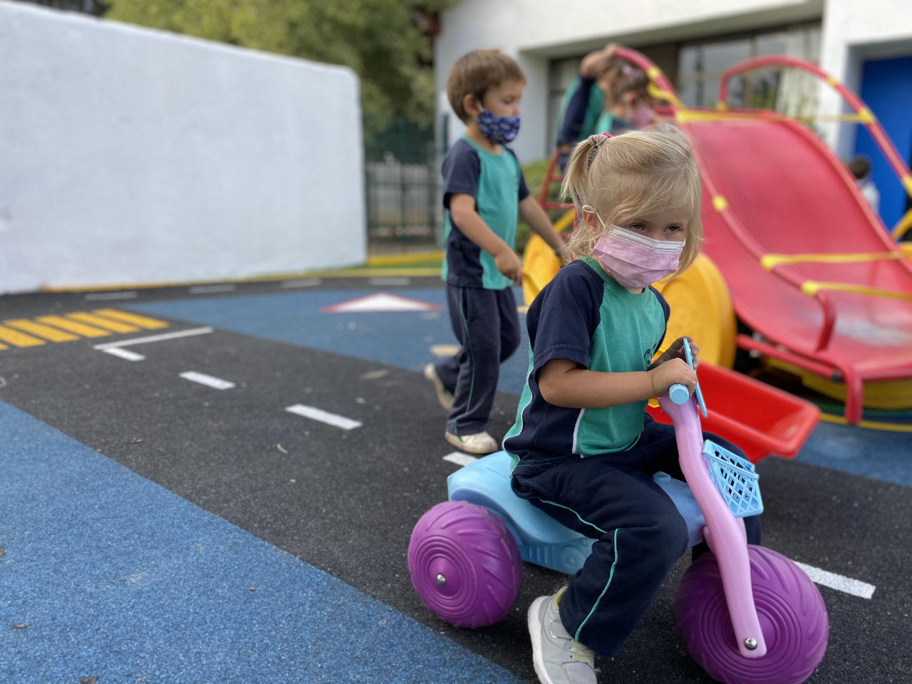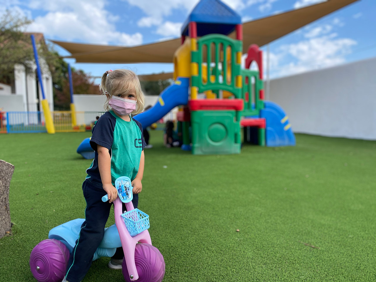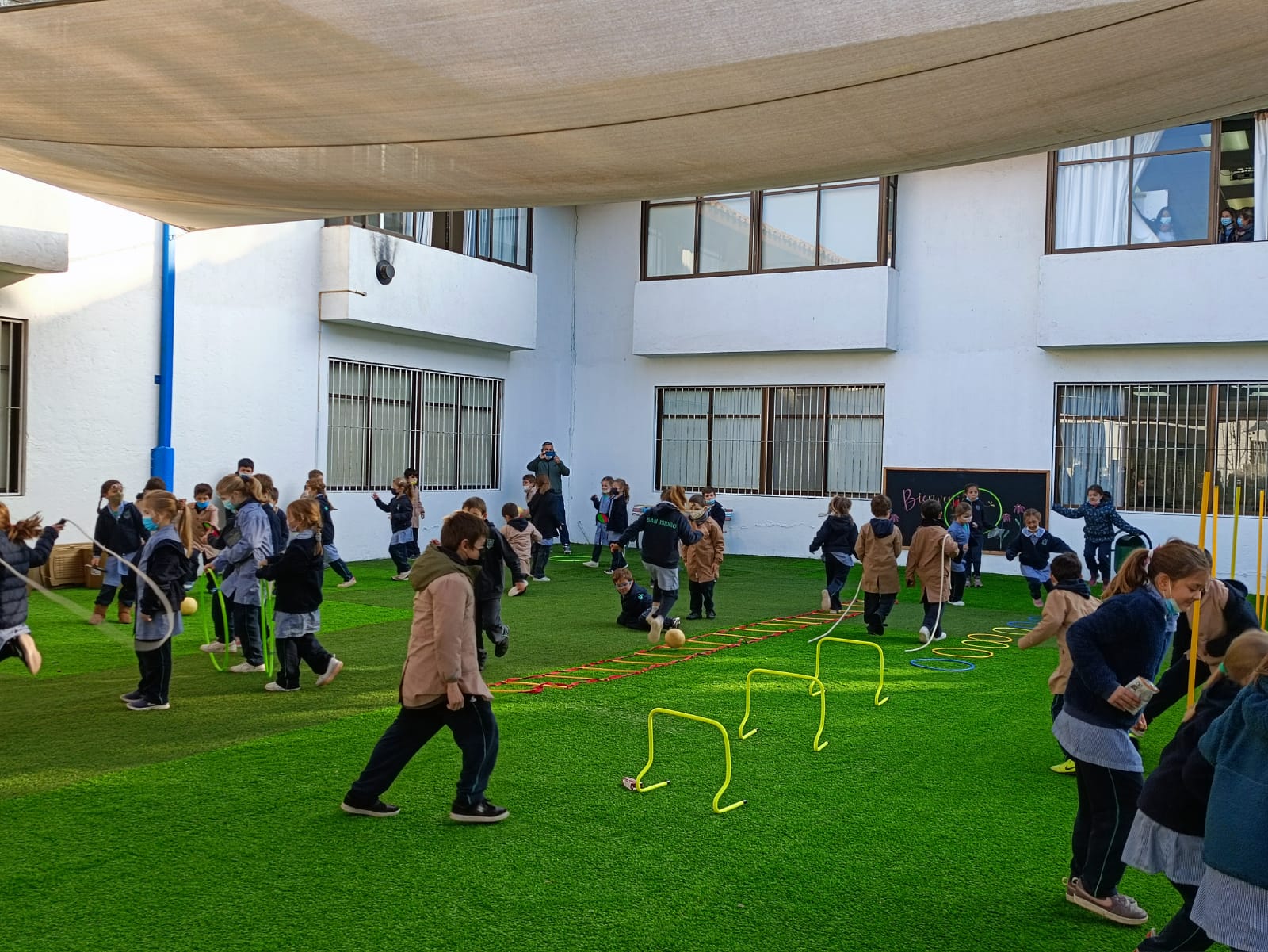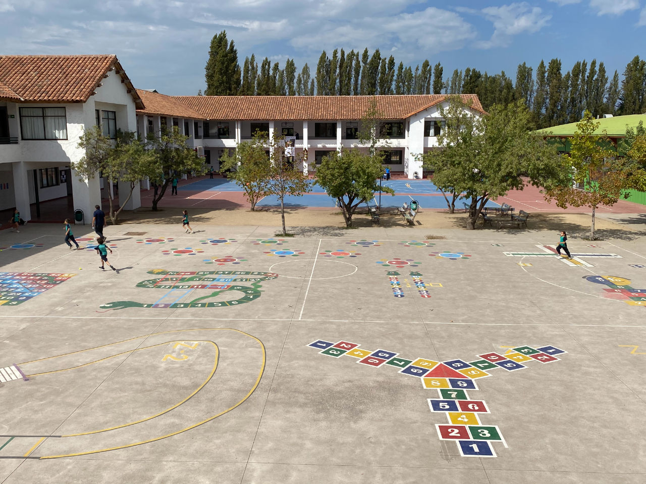 • 1 patio de pasto sintético con juegos infantiles para 1° y 2° básico