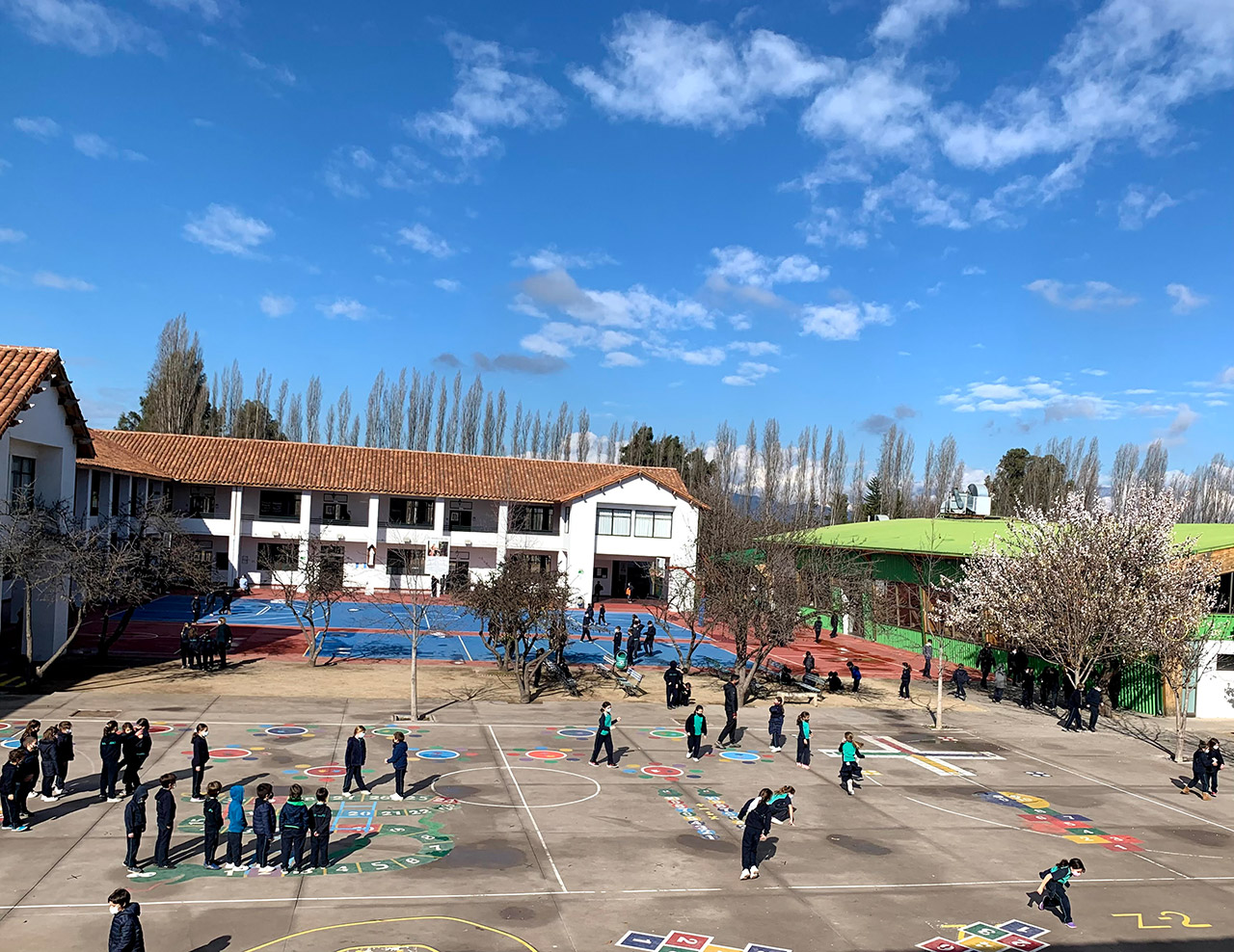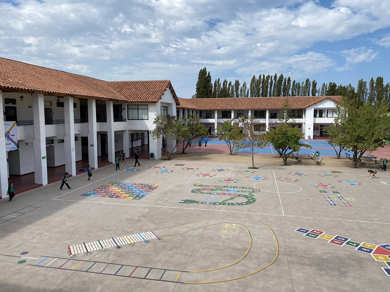 Cada edificio cuenta con oficinas, salas de clases, patios, pasillos techados, baños y diferentes dependencias con instalaciones, equipamiento y seguridad adecuada que responden a nuestra formación integral, además de amplias áreas verdes a disposición de nuestros alumnos, con canchas de futbol de pasto natural, canchas de futbol de pasto sintético y mesas de picnic.